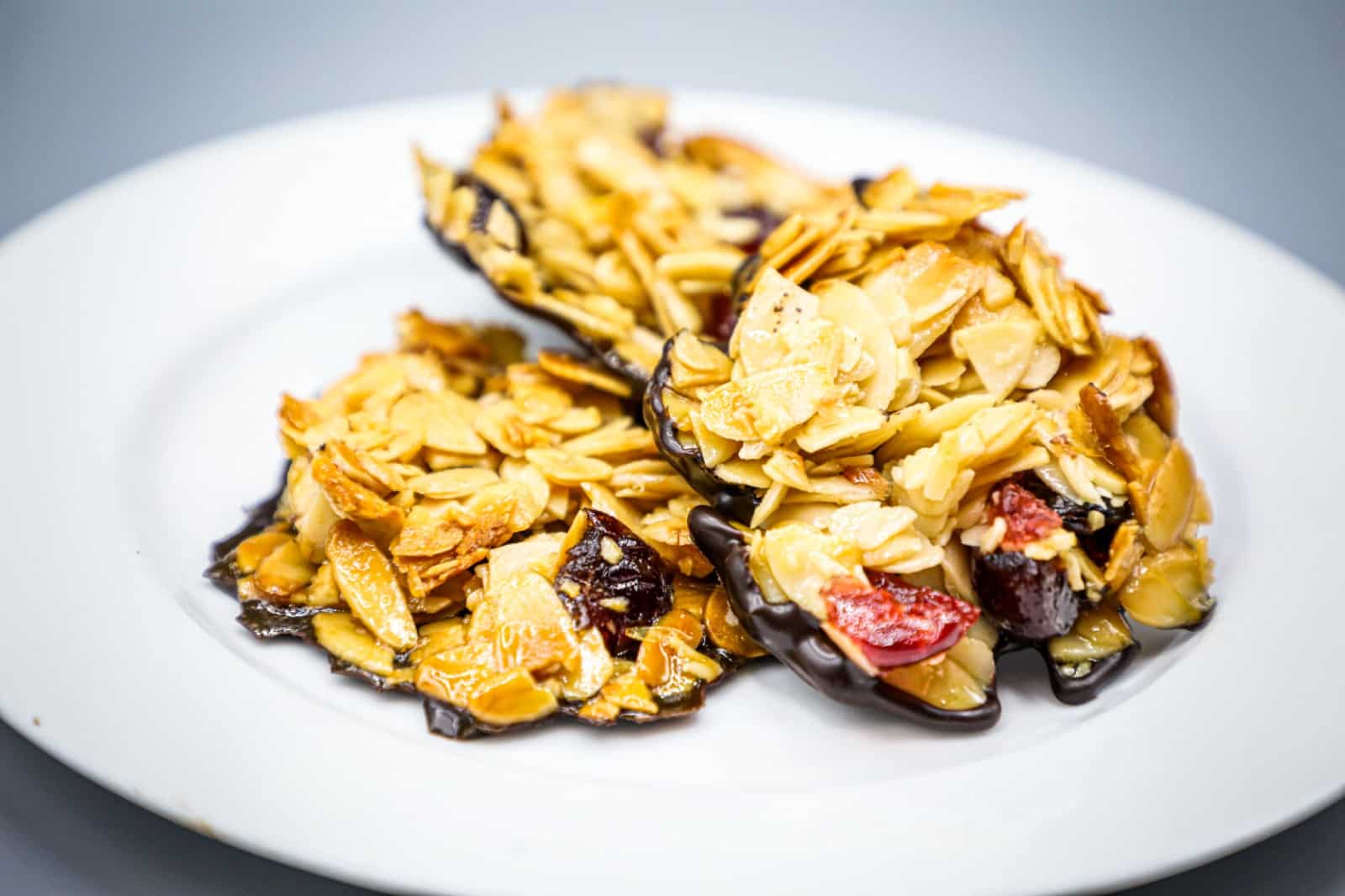 Nutty Clusters are a delicious simplified version of Florentines. They are quick to make, with mostly store cupboard ingredients. I have chosen to use Almonds and cherries as my main ingredients, with the addition of an Amaretto Flavour Shot. You can use any nuts and dried fruit you like! We will also dip the bottom of our Nutty Clusters in dark Melt & Pour.