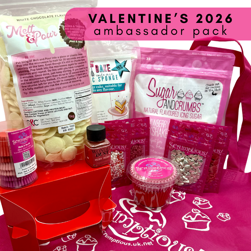 A wonderful selection of edible cake decorations, sprinkles, cupcake case, cake mixes, Melt and Pour, Wonder Dust and Flavoured Icing Sugar, specially tailored, with a Valentine’s Day theme.