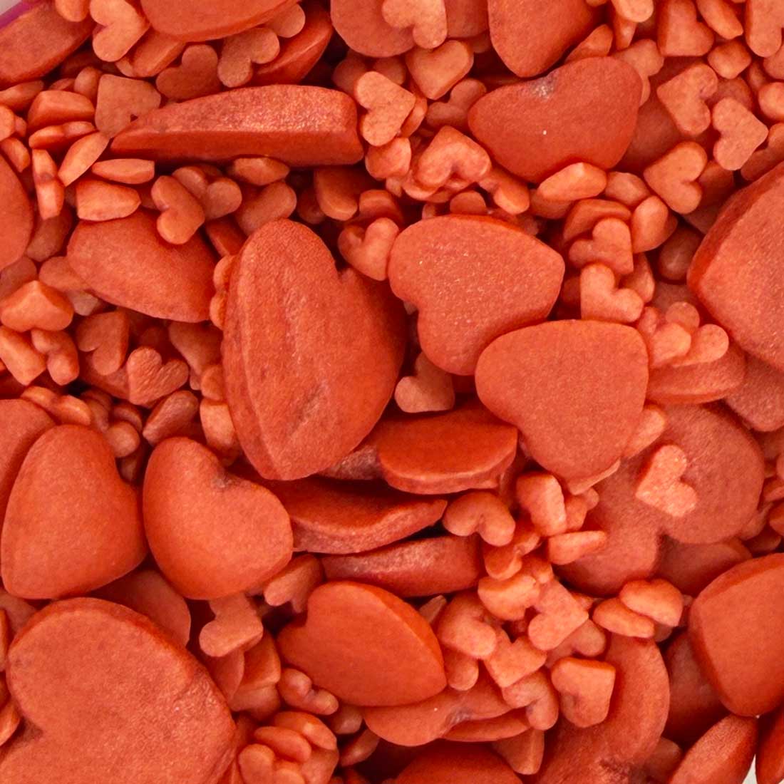 A beautiful sugar hearts mix of mini, standard and jumbo hearts, for all of your valentines and love themed cakes, bakes and celebrations. These exquisite sprinkles are an excellent choice for embellishing cupcakes, cakes, cookies, macarons, biscuits, and doughnuts. Elevate the romance of your cake creations by adding these gorgeous sprinkles as a finishing touch.