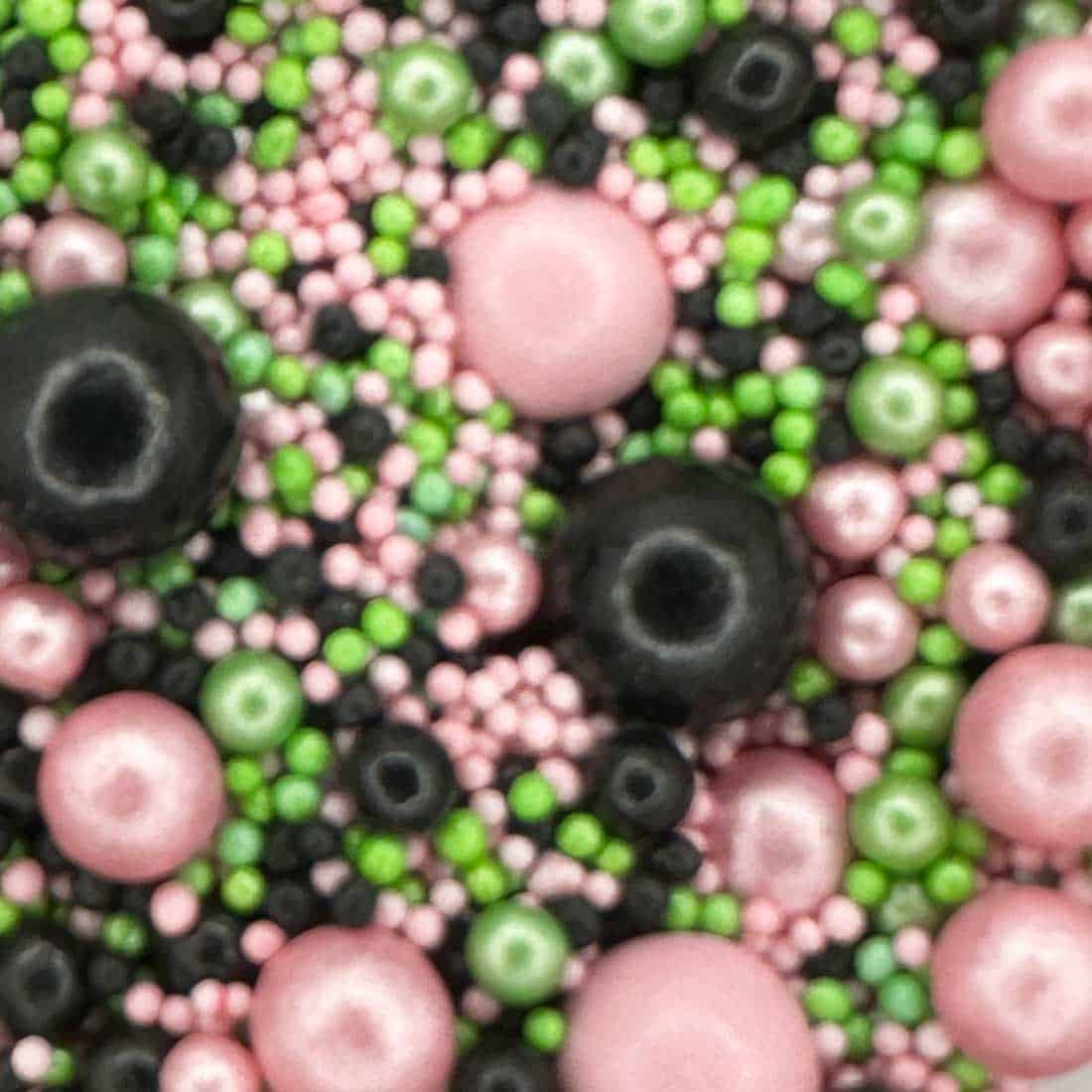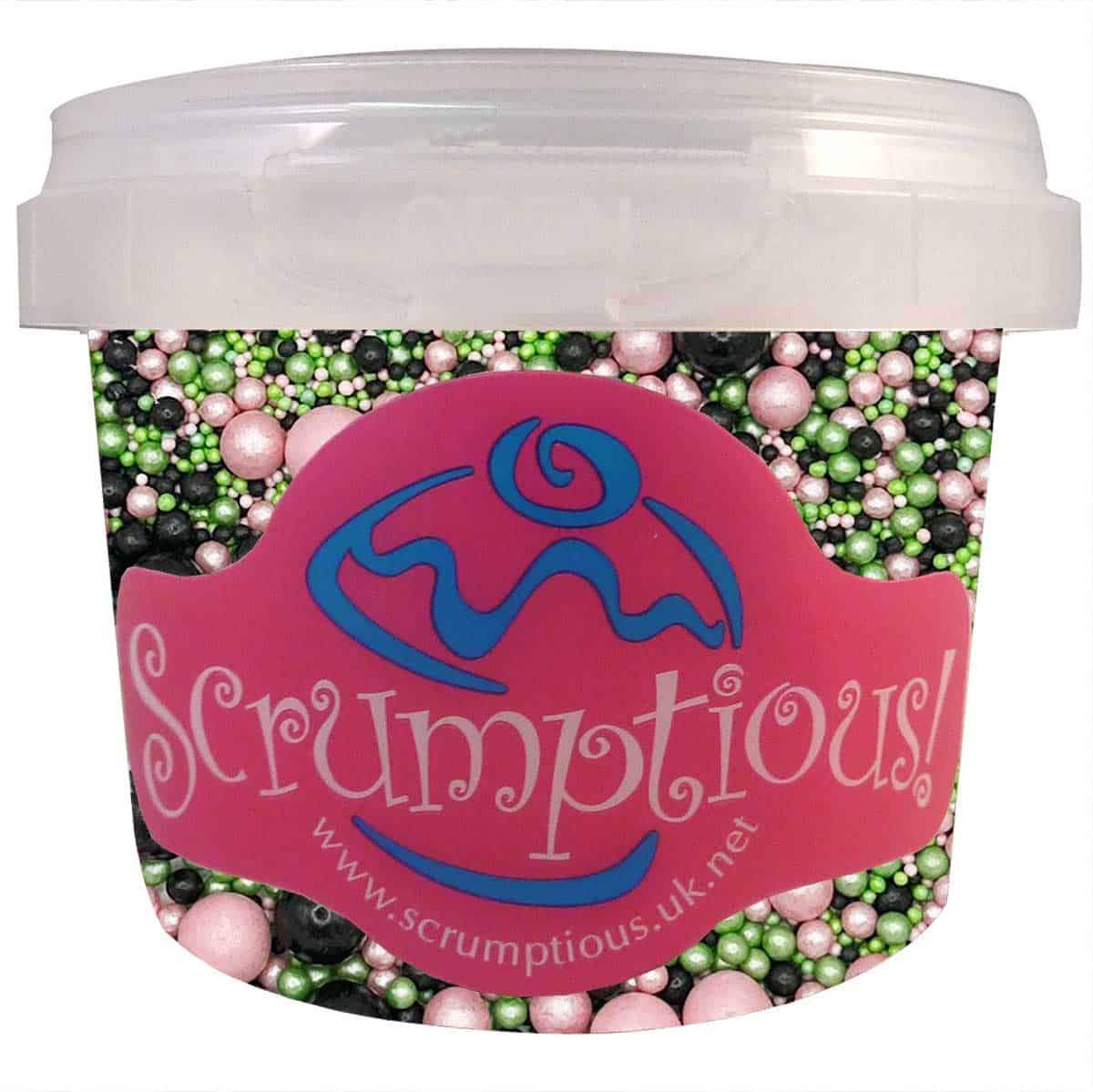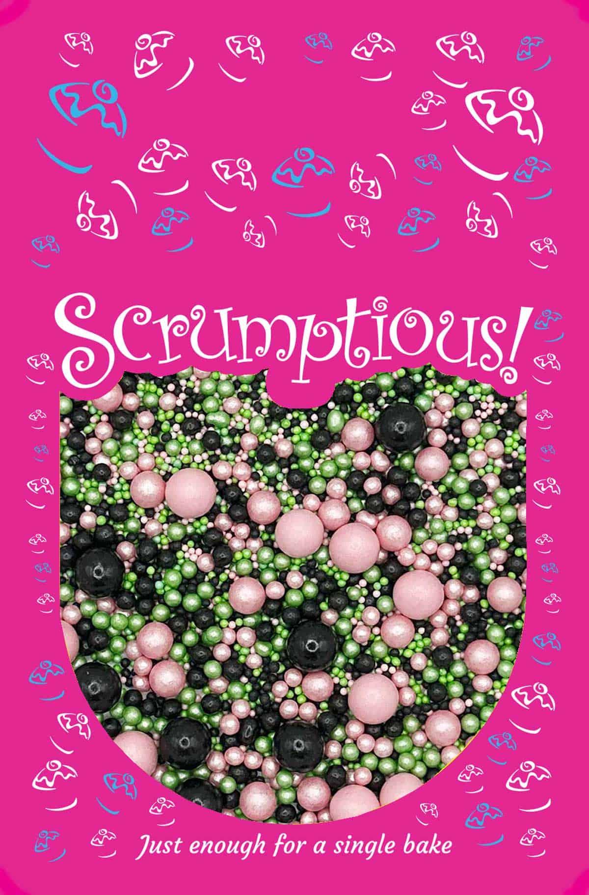 This particular Wicked cake topper mix contains a beautiful combination of glimmer, polished and matt pearls, chocoballs and 100s and 1000s ranging in size from 2mm 100’s and 1000’s and pearls to 10mm delicious chocoballs. Wicked cake decorations that are ideal for Wicked themed cakes, Halloween and spooky celebrations. A unique and exciting blend.